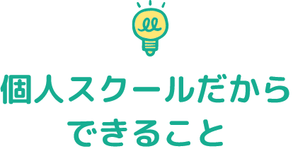 個人スクールだからこそ、保護者の心配やお悩みにすぐ対応できます。相談を通して、お子さまの成長を家庭と共有しながらサポートしていきます。